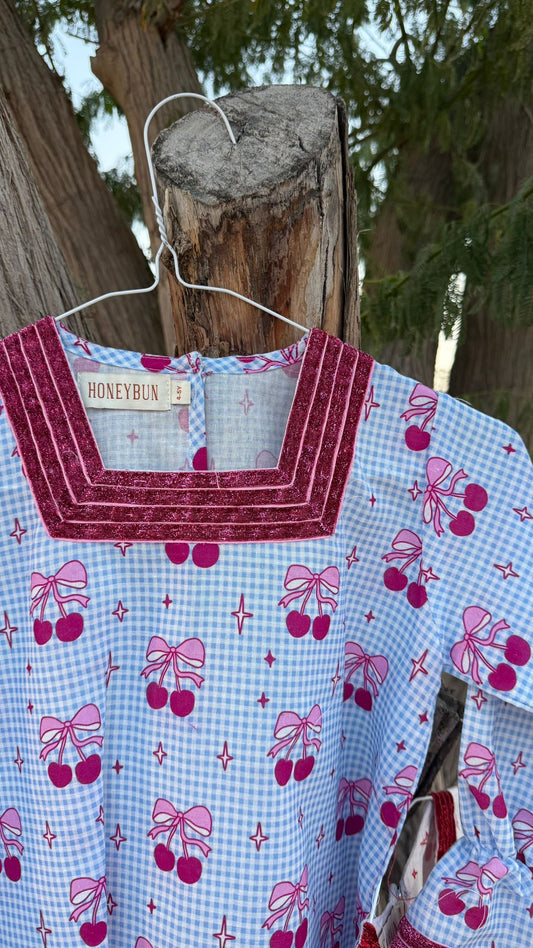 Glitter cherry jalabya with hairclip